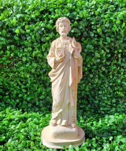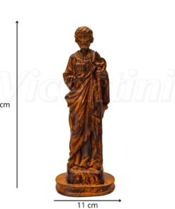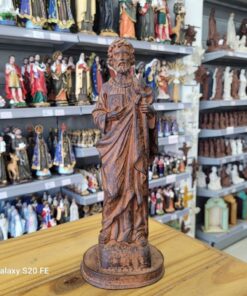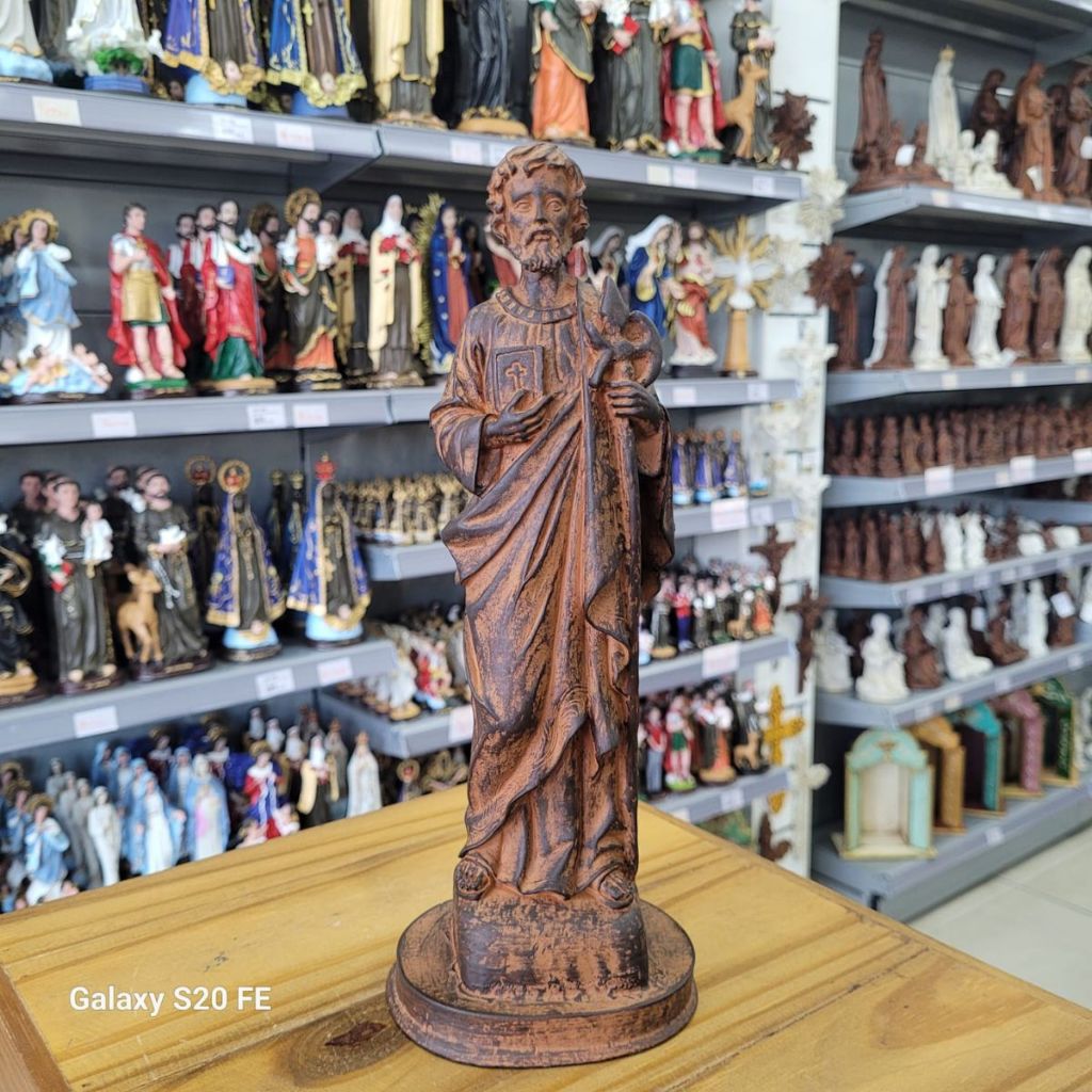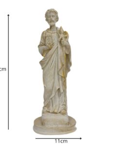 Com 28 cm de altura e 11 cm de largura, a peça foi cuidadosamente esculpida para expressar toda a serenidade e força espiritual de São Judas, encorajando os fiéis a manterem viva a fé mesmo diante das maiores dificuldades.