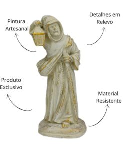 Com 14 cm de altura e 6 cm de largura, a peça é detalhada e delicada, ideal para quem deseja fortalecer sua devoção e sentir a presença intercessora do santo.