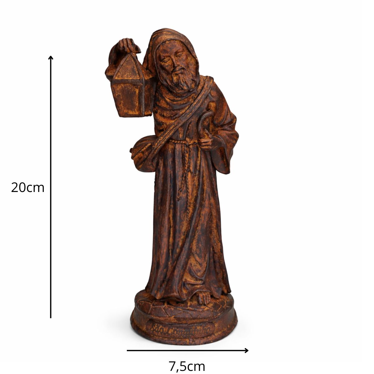 Com 20 cm de altura e 7,5 cm de largura, a peça é compacta e perfeita para oratórios, altares e espaços de oração.