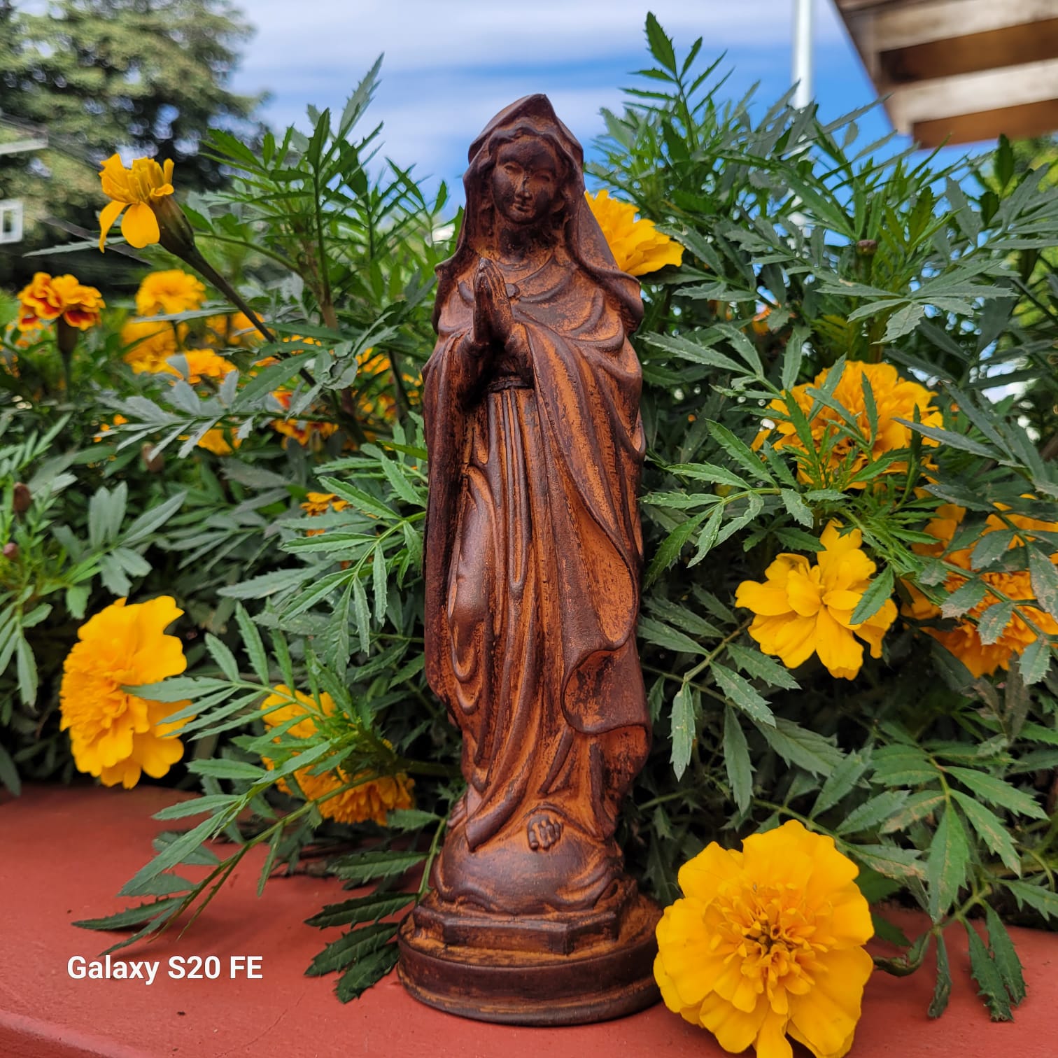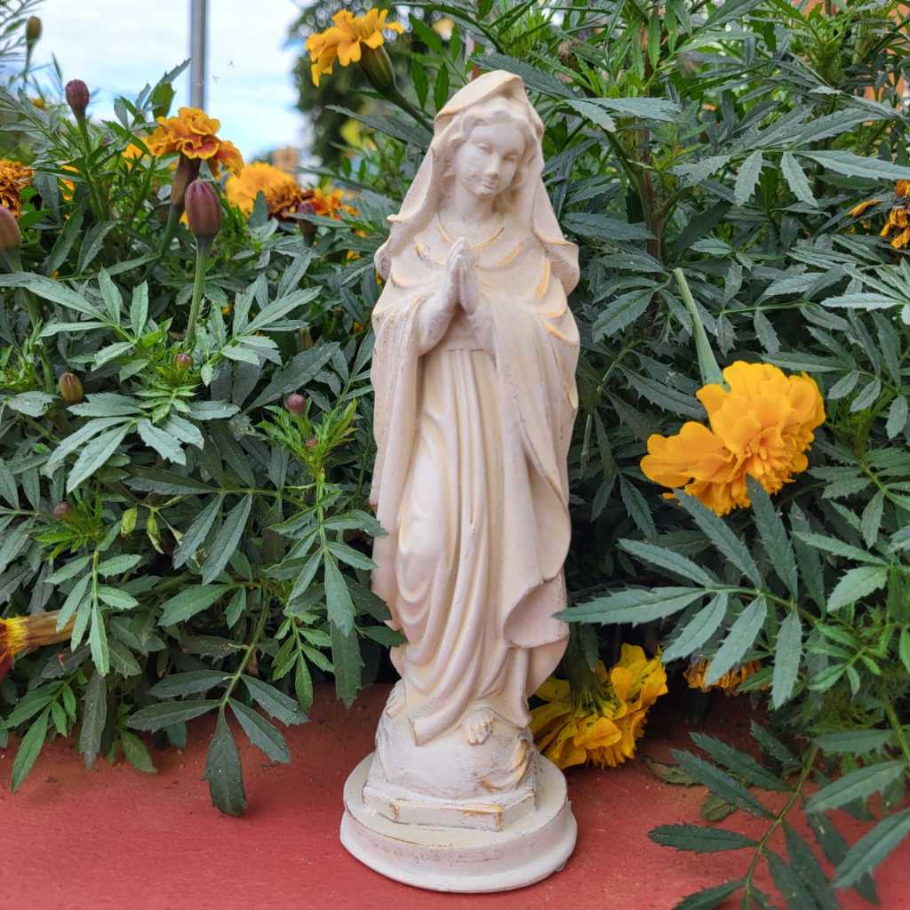 Com 20 cm de altura e 6,5 cm de largura, esta peça é confeccionada em resina de alta qualidade, com pintura 100% artesanal, evidenciando a postura serena e recolhida da Mãe de Jesus em atitude de oração. Ideal para oratórios, espaços de meditação ou como um presente cheio de significado espiritual.