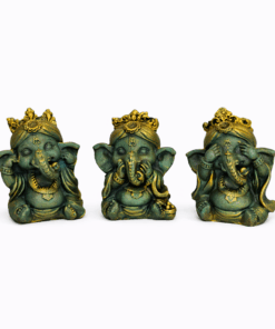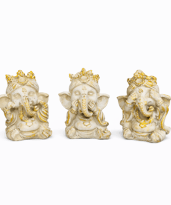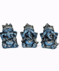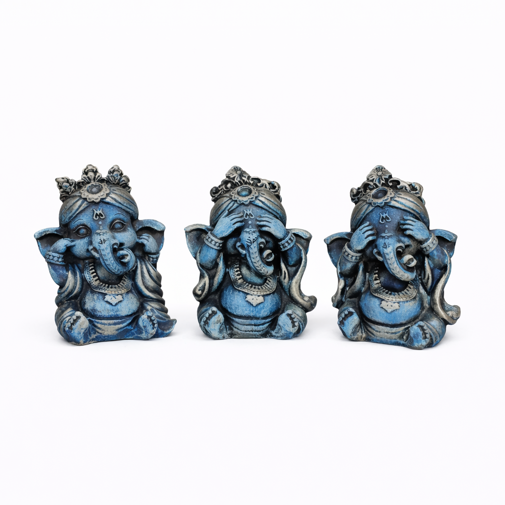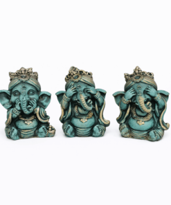 Traga boas energias e proteção para o seu ambiente com este mini trio de Ganesha da sabedoria, representando os ensinamentos “Não vejo o mal, não falo o mal e não ouço o mal”. Símbolo de pureza, equilíbrio e sabedoria interior, essas pequenas esculturas são perfeitas para inspirar harmonia e positividade no dia a dia.